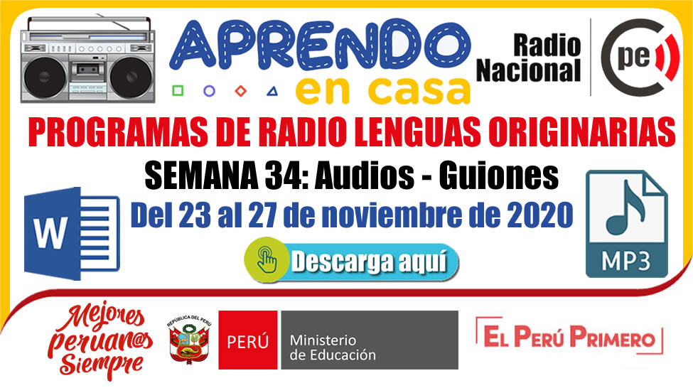 PROGRAMAS RADIALES EN LENGUAS ORIGINARIAS: Sesiones y Audios – Semana 34 [Del 23 al 27 de noviembre de 2020]