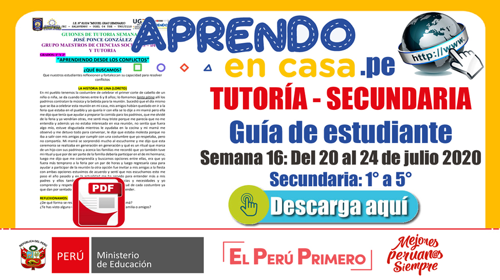 TUTORÍA SECUNDARIA: Guía de estudiante, Semana 16: Del 20 al 24 de julio 2020 [Secundaria: 1° a 5°]
