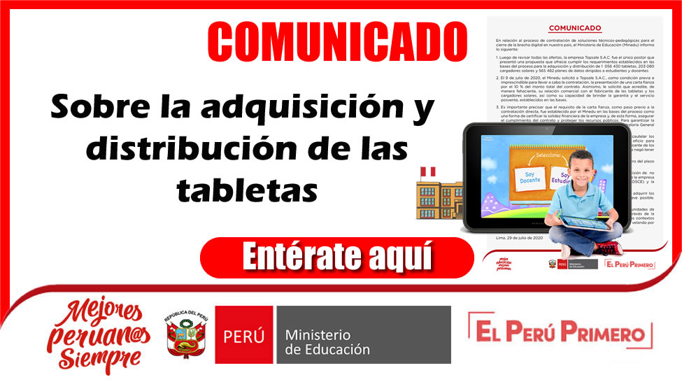 COMUNICADO: Sobre la adquisición y distribución de las tabletas [MINEDU]