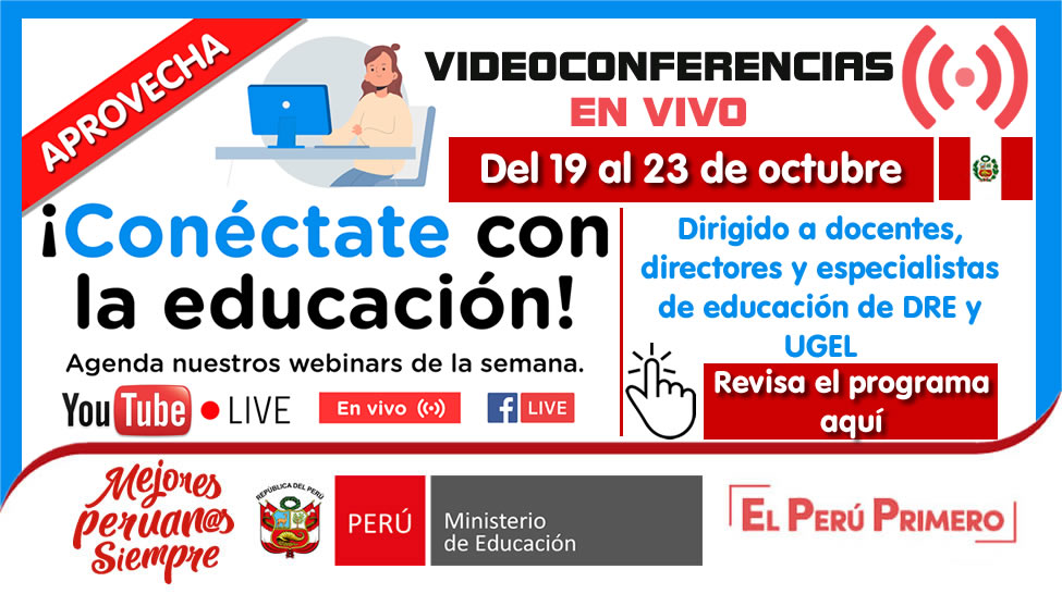 CONFERENCIAS VIRTUALES GRATUITAS (Webinars) del MINEDU: Del 19 al 23 de octubre de 2020 [Para docentes, directores y especialistas][Conoce los horarios aquí]