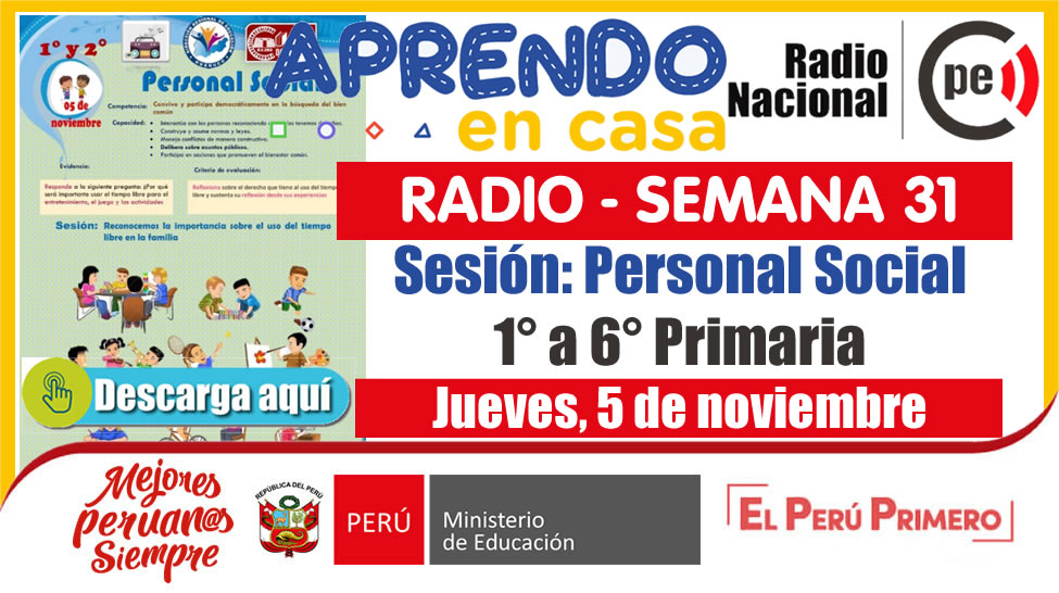 SESIÓN RADIAL DESARROLLADA (Adaptada para el estudiante) – Jueves 5 de noviembre de 2020 (Personal Social) – [SEMANA 31][PRIMARIA: 1° a 6°][Descargar aquí]