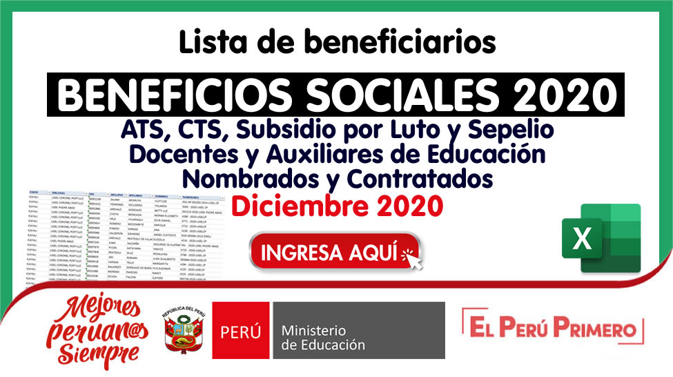 Lista de BENEFICIARIOS DE LOS BENEFICIOS SOCIALES NOVIEMBRE 2020 – ATS, CTS, Subsidio por Luto y Sepelio para Docentes Nombrados y Contratados [Decreto Supremo N° 353-2020-EF]