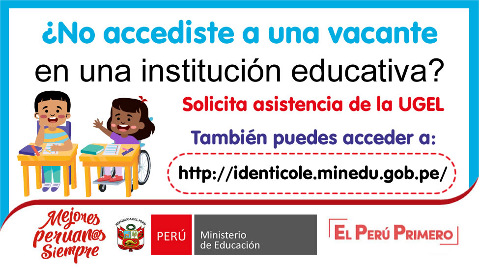 MATRÍCULA 2021: ¿No accediste a una vacante en una institución educativa?, solicita asistencia de la UGEL a accede a Identicole (identicole.minedu.gob.pe)