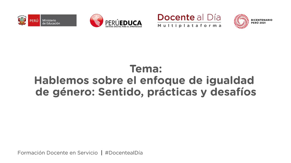 Hablemos sobre el enfoque de Igualdad de género: sentido, prácticas y desafíos + PPT (Transmitido el 21 de junio de 2021 – 6:00 p.m.) [Webinar – Docente al Día]