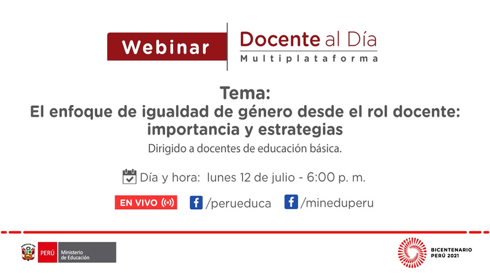 El enfoque de igualdad de género desde el rol docente: importancia y estrategias (Lunes 12 de julio de 2021 – 6:00 p.m.) [Webinar – Docente al Día]