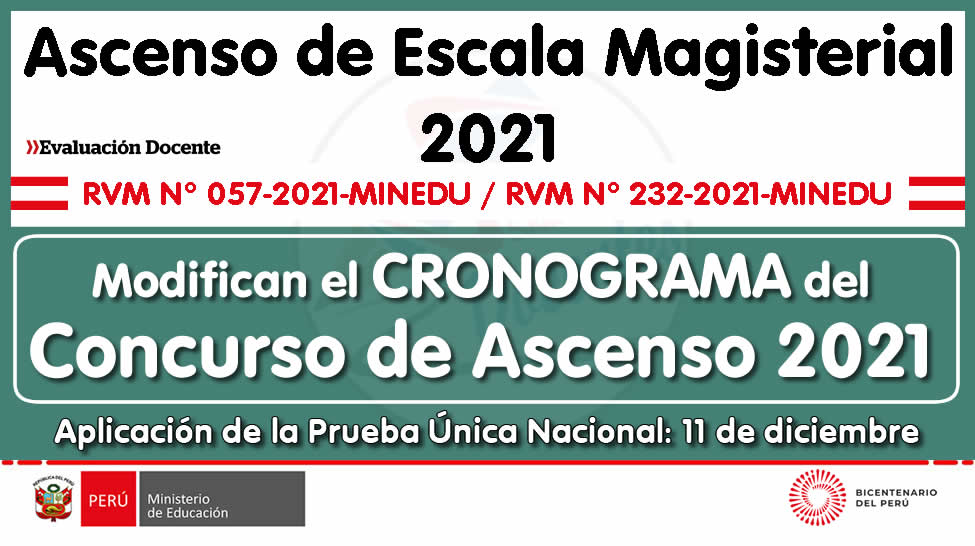 ASCENSO DE ESCALA 2021: Modifican el CRONOGRAMA del Concurso Público para el Ascenso de Escala de los profesores de Educación Básica en la Carrera Pública Magisterial correspondiente al año 2021 (RVM N° 232-2021-MINEDU)