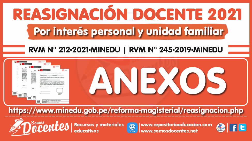 REASIGNACIÓN DOCENTE 2021: ANEXOS de la presentación del expediente para reasignación docente 2021 por interés personal y unidad familiar