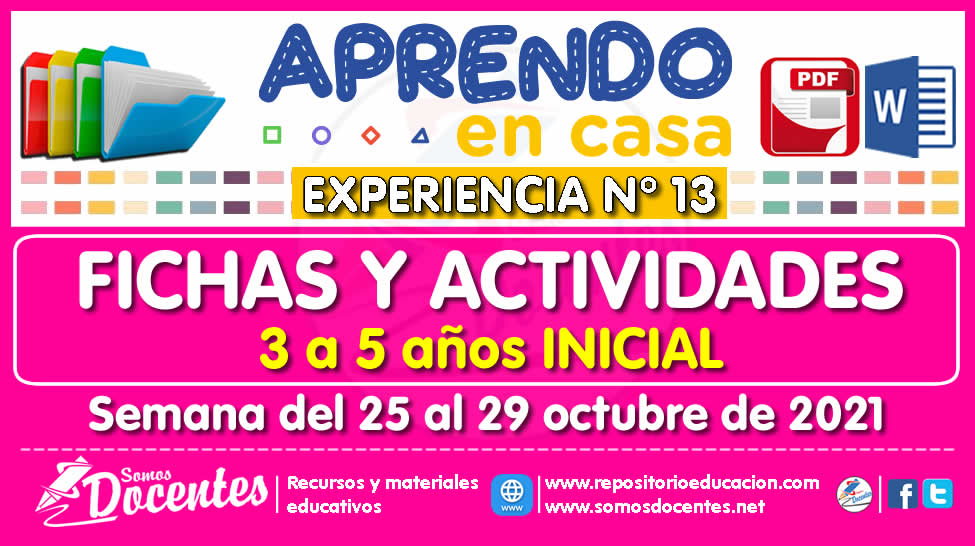FICHAS Y ACTIVIDADES DE APRENDIZAJE (3 a 5 años INICIAL) – Semana del 25 al 29 de octubre del 2021 [Experiencia de Aprendizaje N° 13]