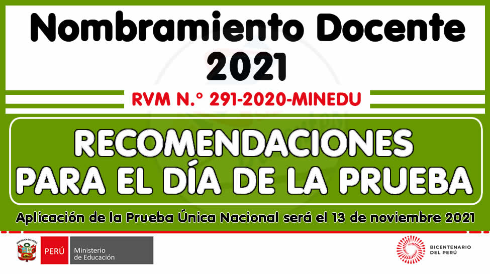 Nombramiento Docente 2021: RECOMENDACIONES PARA EL DÍA DE LA PRUEBA