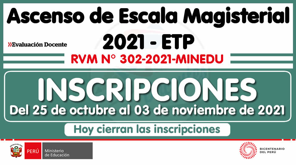 ASCENSO ETP 2021: INSCRIPCIÓN para el Concurso para el Ascenso de Escala Magisterial para profesores de Educación Técnico-Productiva (ETP) (RVM N° 302-2021-MINEDU)