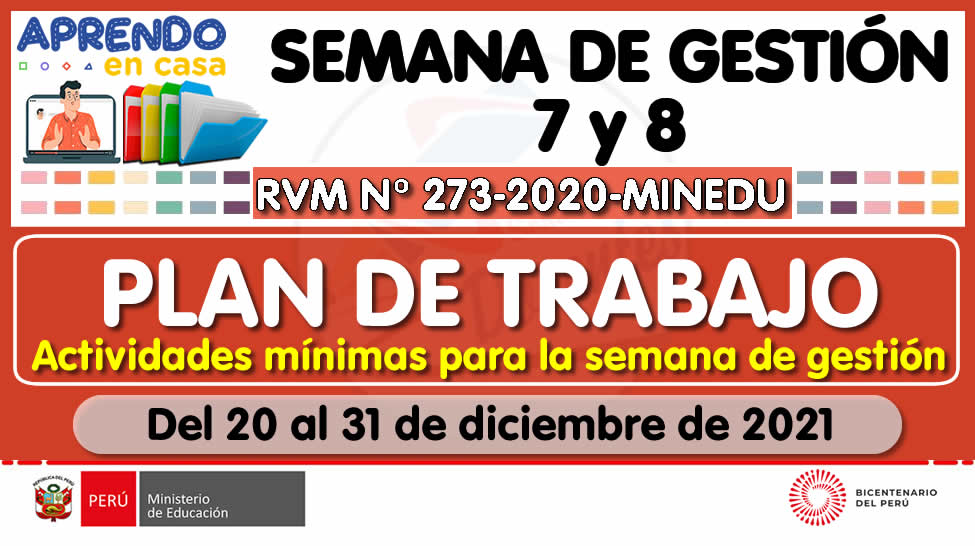 SEMANA DE GESTIÓN 7 y 8: PLAN DE TRABAJO DE LA SEMANA DE GESTIÓN (Del 20 al 31 de diciembre de 2021) según la Guía de Actividades mínimas para las semanas de gestión 2021 [Referencial] [WORD]