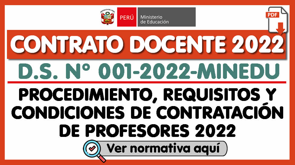 CONTRATO DOCENTE 2022: NORMA QUE REGULAR EL PROCEDIMIENTO DE LA CONTRATACIÓN DOCENTE 2022 (D.S. N° 001-2022-MINEDU)