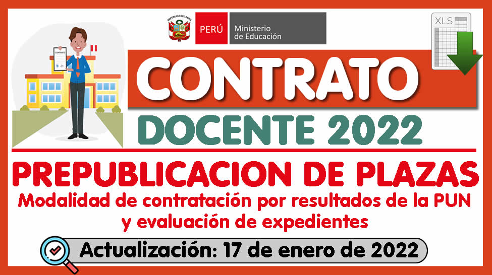 CONTRATO DOCENTE 2022: SEGUNDA PREPUBLICACIÓN DE PLAZAS PARA LA CONTRATACIÓN DOCENTE 2022 (Actualizado al 17 de enero del 2022)