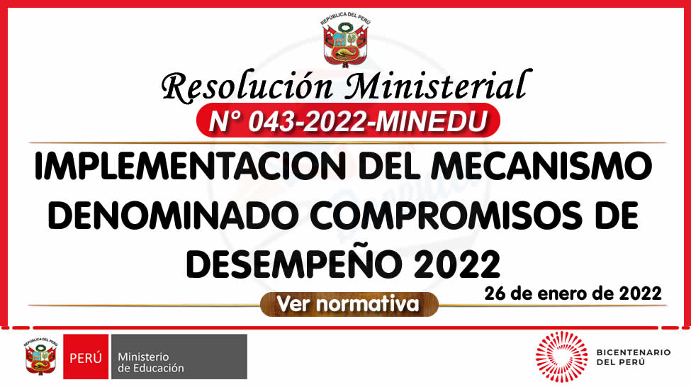 RM N° 043-2022-MINEDU: IMPLEMENTACION DEL MECANISMO DENOMINADO COMPROMISOS DE DESEMPEÑO 2022