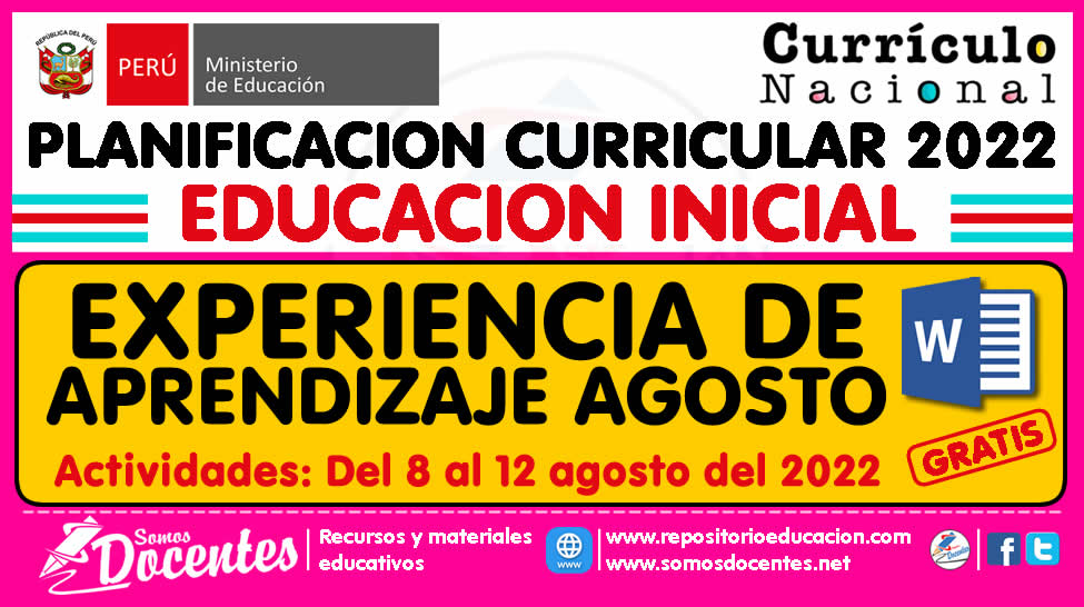 INICIAL: EXPERIENCIA DE APRENDIZAJE AGOSTO (Actividades de Aprendizaje del 08 al 12 de agosto de 2022)