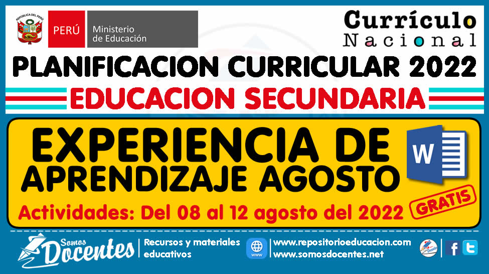 SECUNDARIA: EXPERIENCIA DE APRENDIZAJE AGOSTO (Actividades de Aprendizaje del 08 al 12 de agosto de 2022)