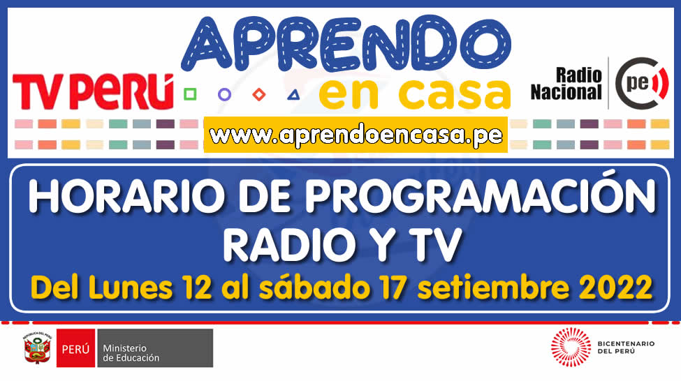 Horario de la Programación de Radio y TV [Del lunes 12 al sábado 17 de setiembre de 2022][Inicial – Primaria – Secundaria – EBE – EBA]