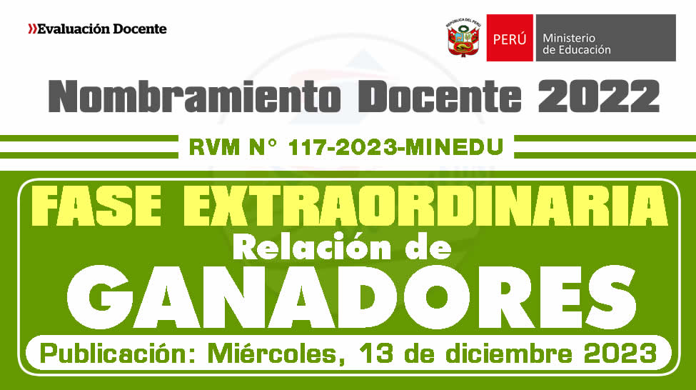 Nombramiento Docente 2022: Relación de Ganadores de la Fase Extraordinaria | Miércoles, 13 de diciembre de 2023.