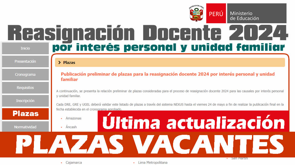 Reasignación Docente 2024: NUEVA ACTUALIZACIÓN DE PLAZAS