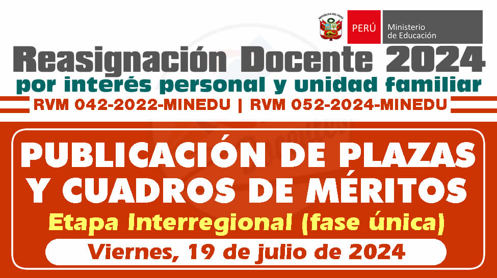 Reasignación Docente 2024: Publicación de Plazas Orgánicas Vacantes y Cuadros de Méritos | Etapa Interregional (Fase única) | Viernes 19 de julio de 2024