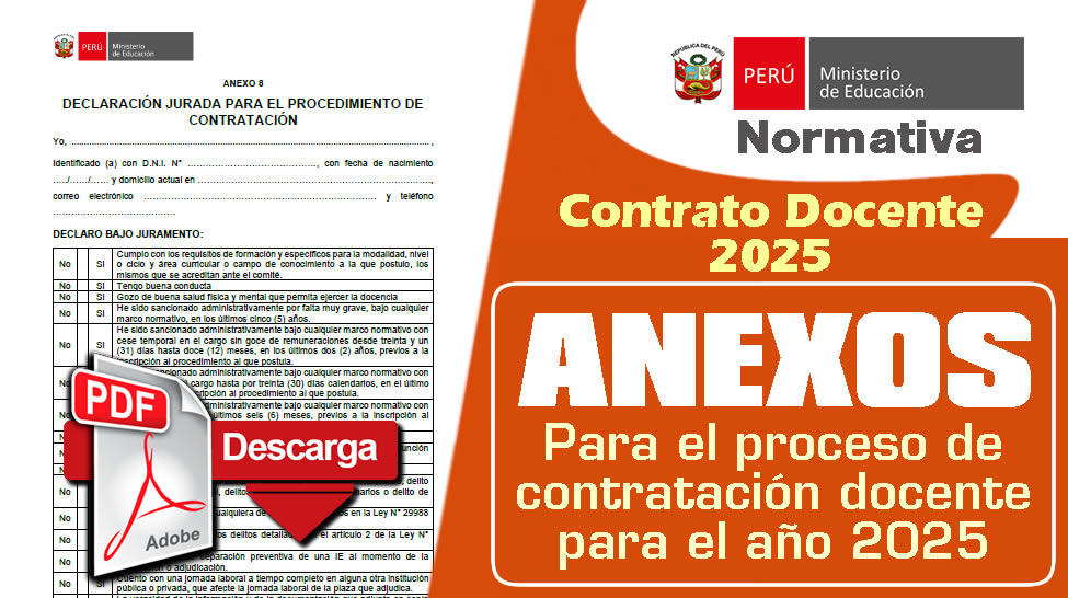 El Ministerio de Educación pone a disposición de los postulantes al proceso de contrato docente 2025 un conjunto de anexos esenciales para garantizar un procedimiento claro y organizado. A continuación, te presentamos los anexos junto con una breve descripción de cada uno: