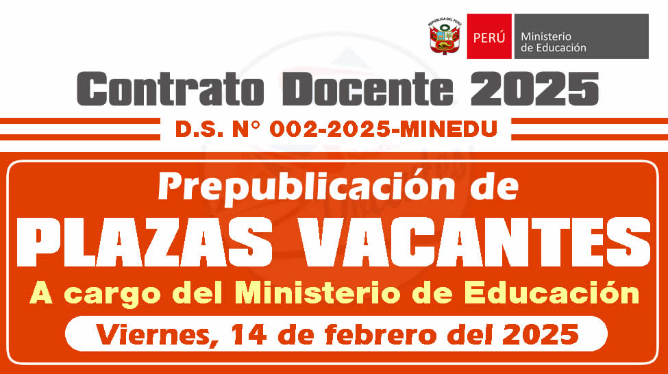 El Ministerio de Educación (MINEDU) ha programado la prepublicación de plazas vacantes para el viernes 14 de febrero de 2025.