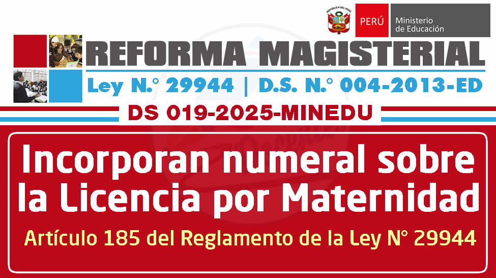 Decreto Supremo Nº 019-2025-MINEDU | Decreto Supremo que modifica diversos artículos del Reglamento de la Ley N° 29944, Ley de Reforma Magisterial, aprobado por el Decreto Supremo N° 004-2013-ED.