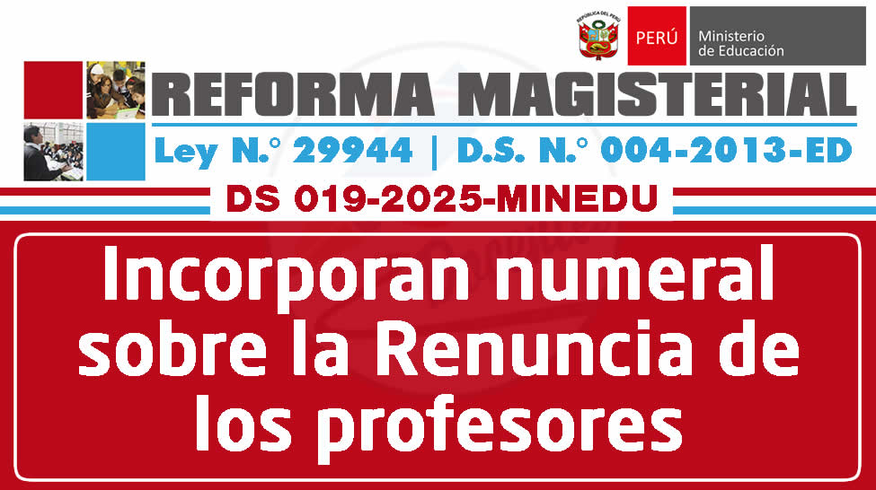 Decreto Supremo Nº 019-2025-MINEDU | Decreto Supremo que modifica diversos artículos del Reglamento de la Ley N° 29944, Ley de Reforma Magisterial, aprobado por el Decreto Supremo N° 004-2013-ED.