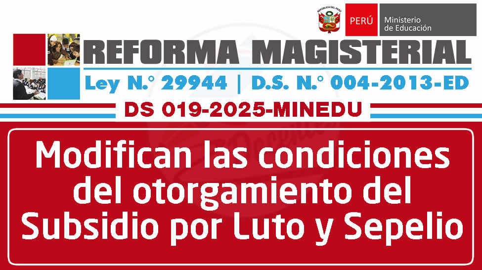 Decreto Supremo Nº 019-2025-MINEDU | Decreto Supremo que modifica diversos artículos del Reglamento de la Ley N° 29944, Ley de Reforma Magisterial, aprobado por el Decreto Supremo N° 004-2013-ED.