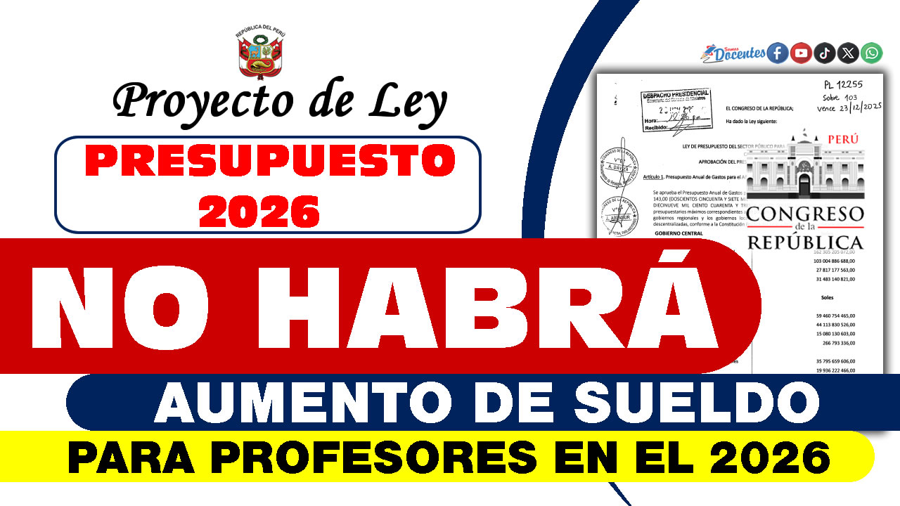 El dictamen aprobado por el Congreso el 28 de noviembre de 2025 confirma que no habrá un aumento general de sueldo para los docentes en el 2026. Sin embargo, el presupuesto sí garantiza la continuidad de plazas, el pago de encargaturas y asignaciones, y mantiene abierta la posibilidad de incrementos vía negociación colectiva.