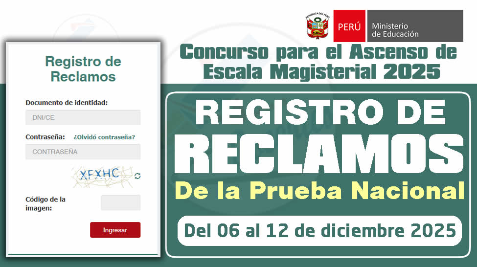 Ascenso 2025: Presentación de reclamos por parte del postulante sobre el puntaje obtenido en la Prueba Nacional | Del 06 al 12 de diciembre de 2025