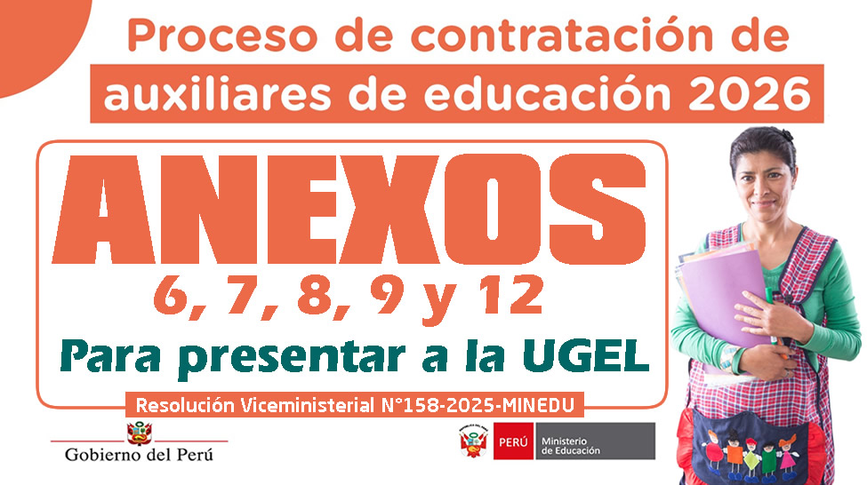 El Ministerio de Educación ha establecido los anexos oficiales que deben adjuntarse al expediente de los postulantes en el proceso de contratación de auxiliares de educación 2026, conforme a la norma técnica aprobada mediante la Resolución Viceministerial número 158-2025-MINEDU. Estos documentos son de presentación obligatoria y permiten a la Unidad de Gestión Educativa Local evaluar correctamente el perfil, la situación legal y administrativa de cada postulante.