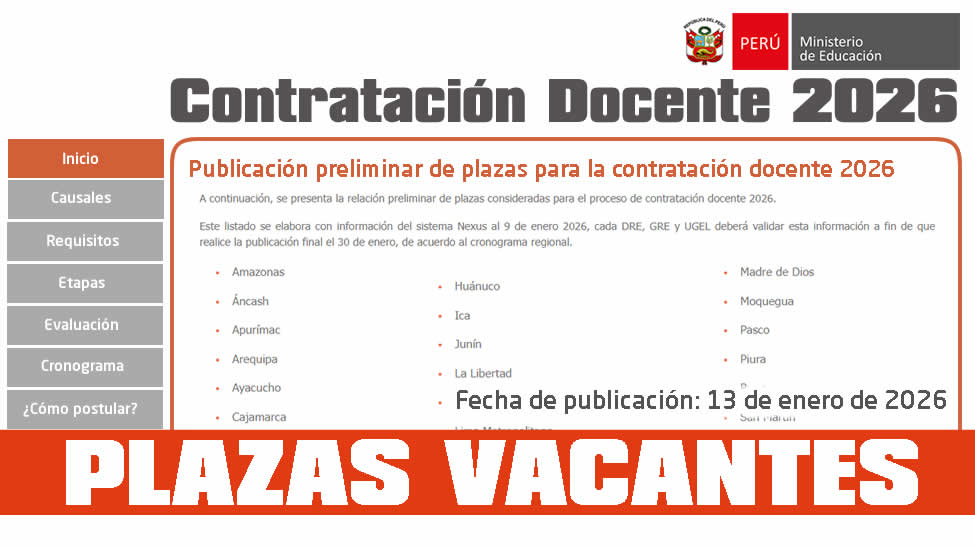 Contrato docente 2026: Publicación preliminar de Plazas para la Contratación Docente 2026 | 13 de enero de 2026