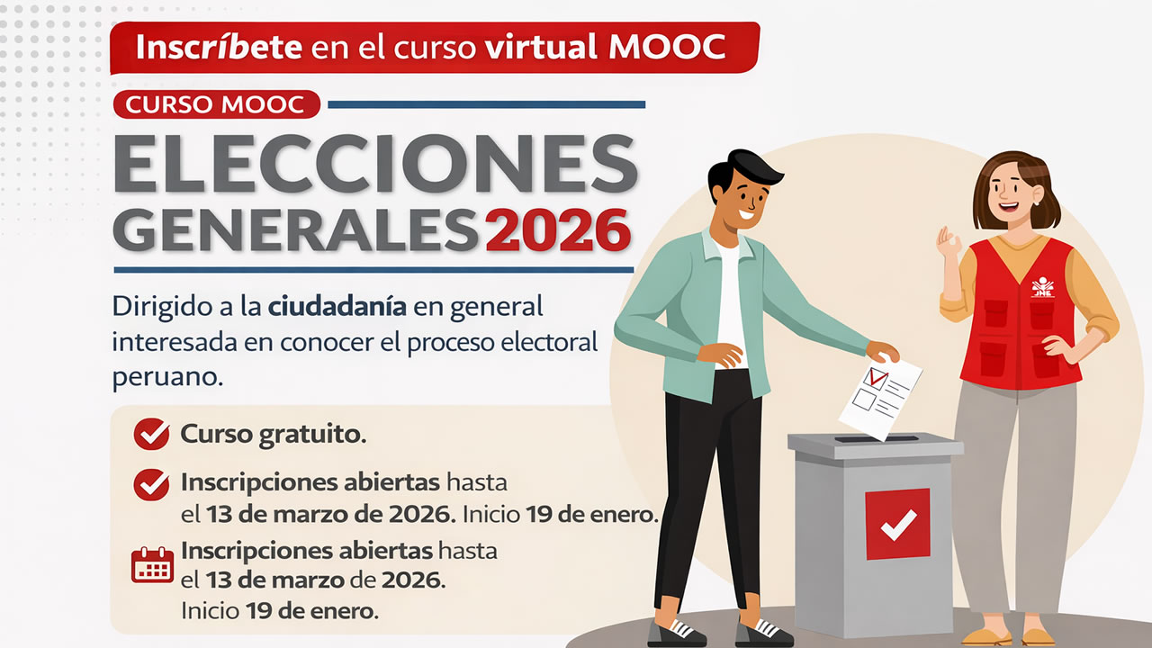 El Jurado Nacional de Elecciones, a través de su Escuela Electoral y de Gobernabilidad (ESEG), invita a la ciudadanía a participar en el curso virtual masivo, abierto y en línea (MOOC) “Elecciones Generales 2026”.